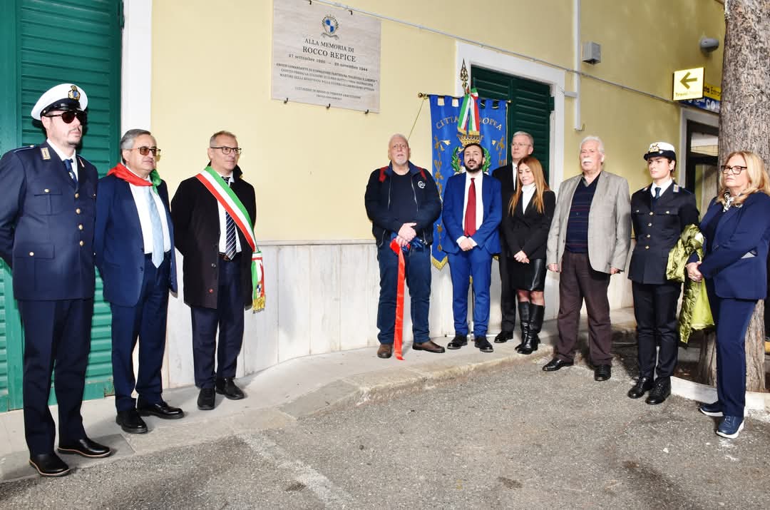 Nella galleria, le foto della scopertura della targa alla stazione ferroviaria di Tropea, dove la piazza antistante è dedicata a Rocco Repice, e l’incontro con gli studenti