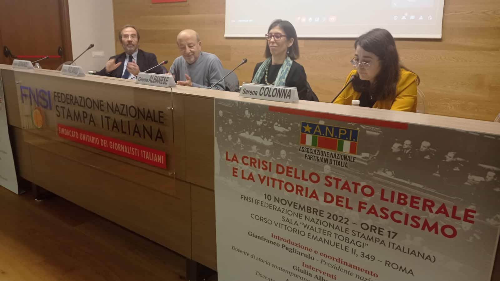 L’Anpi, a un secolo dalla Marcia su Roma, con la conferenza La crisi dello Stato liberale e la vittoria del fascismo, che si è tenuta il 10 novembre scorso alla Federazione nazionale stampa italiana, ha voluto aprire una riflessione su ciò che accadde nel 1922 e le conseguenze per la storia d’Italia nei successivi vent’anni.