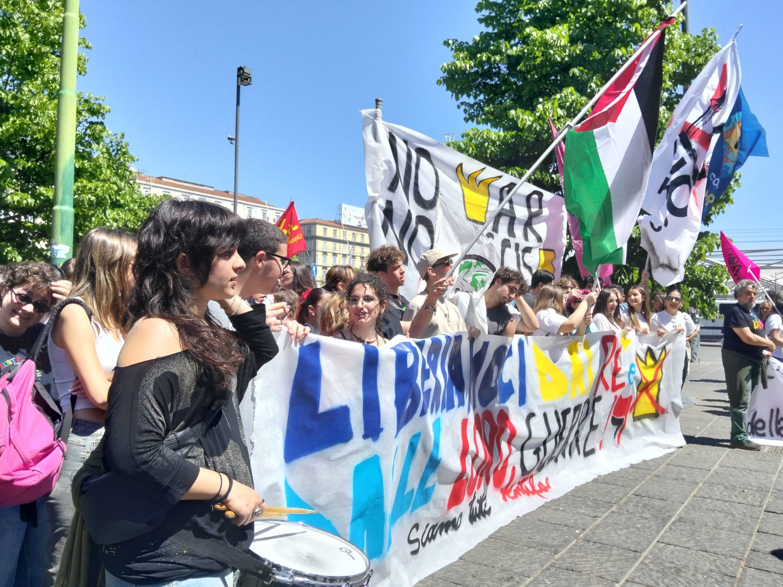 Quindi, la partenza del corteo da piazza Mancini, gli striscioni, numerose bandiere, diverse quelle palestinesi, gli slogan contro il governo Meloni, contro i nuovi autoritarismi, contro la guerra e il genocidio di cui è vittima il popolo palestinese e contro la corsa agli armamenti. “Fuori la Nato dall’Università” e ancora: “Napoli è antifascista, antirazzista, antisionista”, alcuni degli slogan ripetuti in coro, a gran voce dai manifestanti. Particolarmente folto lo spezzone delle reti sociali che, dopo un percorso comune con il resto del corteo si è fermato davanti alla sede del Municipio per contestare il sindaco Gaetano Manfredi, la politica portata avanti dalla sua giunta e contro la Coppa America in programma a Napoli per il 2027.