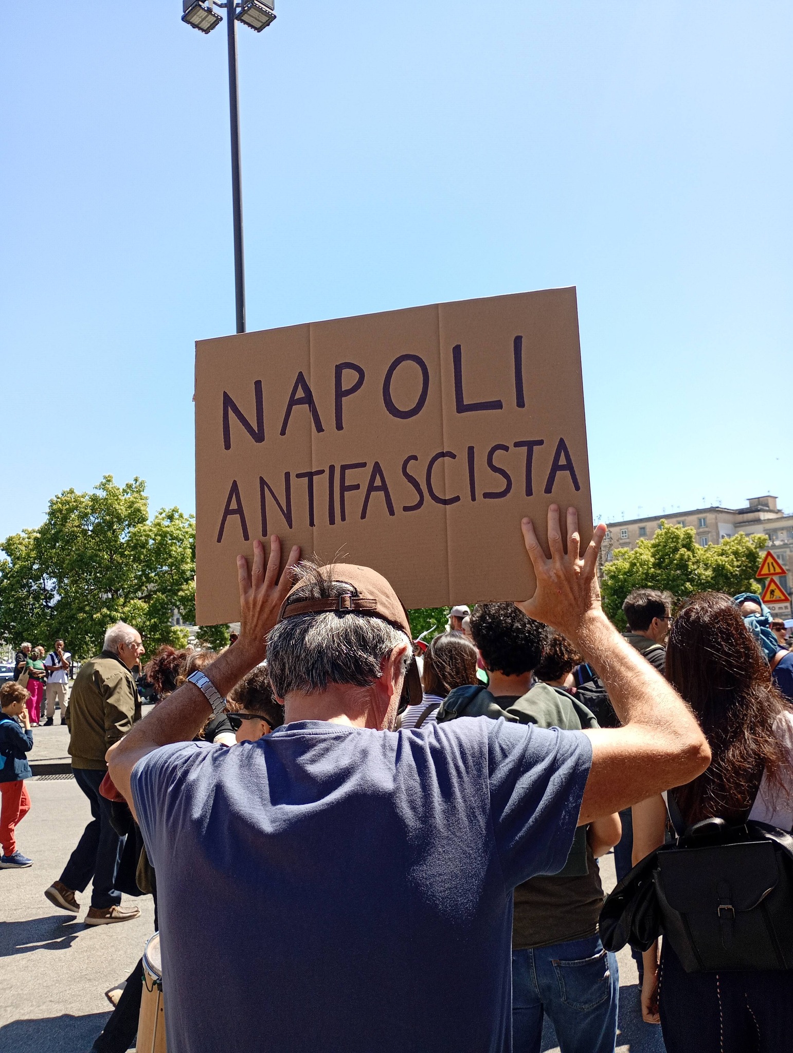 Dalle sale dei convegni alla strada; nei giorni scorsi lo spirito della Resistenza si è diffuso a Napoli dove venerdì 24 ha avuto luogo un presidio di protesta andata in scena contestualmente al convegno promosso dal comitato “Remigrazione e Riconquista”, tenutosi nei pressi dell’aeroporto di Capodichino per presentare la proposta di legge di iniziativa popolare sulla remigrazione. La manifestazione di protesta è stata promossa dai movimenti, dalla Rete No Kings, dalla Cgil e dall’ANPI. “Remigratevi voi, Napoli è antifa. Jatevenne!”, si leggeva su uno striscione messo in bell’evidenza per rispondere a quella che è stata una bassa provocazione nella città delle Quattro Giornate, per di più alla vigilia della Festa della Liberazione.