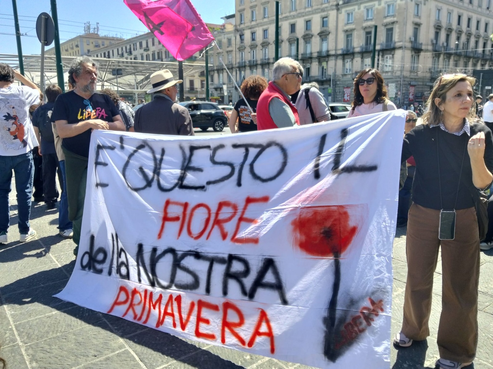 Sabato 25 aprile migliaia hanno sfilato in corteo per il centro del capoluogo campano. Diversi i soggetti che hanno dato vita a una giornata di mobilitazione popolare sotto un cielo più azzurro che mai: Rete No Kings, Libera, ANPI, Cgil, Cisl e Uil, organizzazioni studentesche, Movimento migranti, Potere al Popolo, Ecologia politica, Carc e varie altre sigle della società civile e politiche. Diverse le iniziative nelle zone centrali di Napoli, nelle periferie di Ponticelli, Pianura, tra le altre, e nella città metropolitana. Largo Berlinguer ha ospitato la lettura di articoli della Costituzione da parte di iscritti alle organizzazioni sindacali prima menzionate e all’ANPI, poi il momento istituzionale con la deposizione di una corona di fiori davanti al monumento a Salvo D’Acquisto alla presenza delle autorità cittadine.