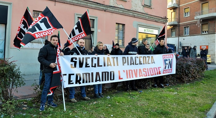 Forza Nuova davanti alla prefettura di Piacenza insieme al segretario Roberto Fiore (da http://www.piacenza24.eu/profughi-forza-nuova-davanti-alla-prefettura-insieme-al-segretario-roberto-fiore/) Se tanti (comunque troppi) negano, o riducono, il fenomeno della reviviscenza del fascismo a “folclore”, allora c’è da essere effettivamente preoccupati. Quando certe testate militanti della destra “liberale” minimizzano le manifestazioni revansciste, è del tutto ragionevole pensare che qualcosa di inquietante stia invece avvenendo. Infatti, abitualmente l’agire fascista si mimetizza e si comporta come un camaleonte: getta il sasso mentre nasconde la mano; cambia colore a seconda delle circostanze. Gli tengono bordone i benpensanti delle cosiddette “maggioranze silenziose”, sempre ansiosi di strepitare, senza per questo assumersi alcuna responsabilità. Essere antifascisti vuole dire denunciare il conformismo e il falso modo di pensare “bene” di questa errata equidistanza