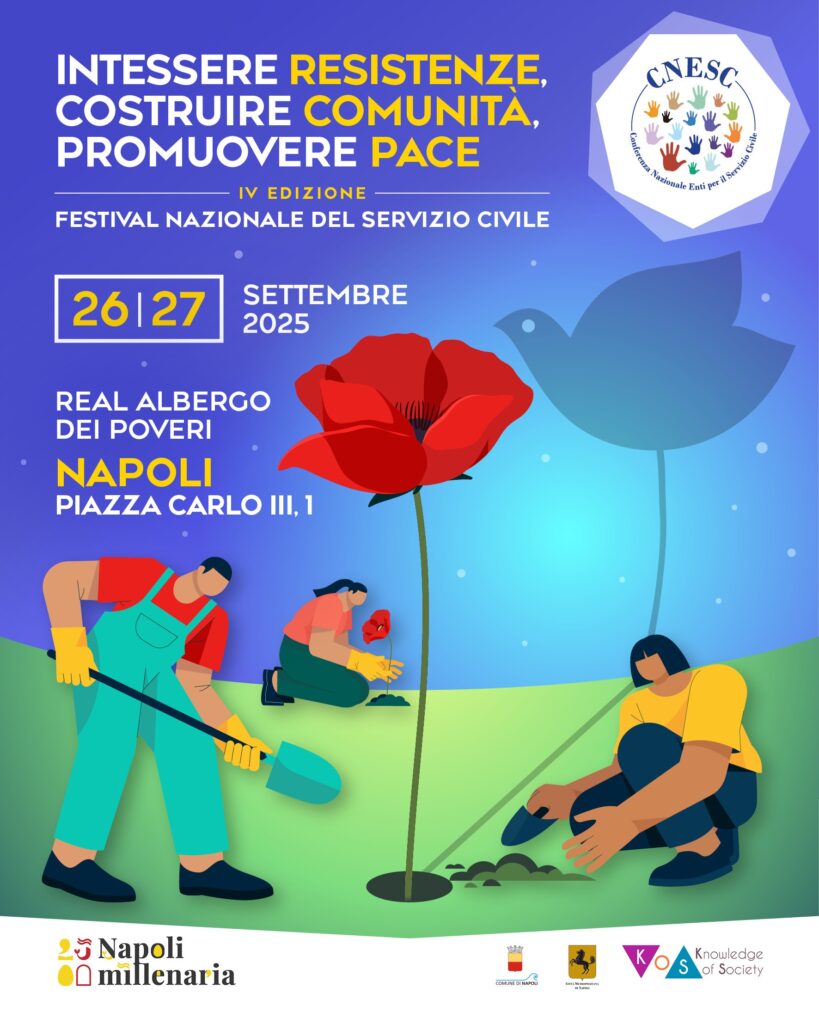 Si è svolta alla fine di settembre (26 e 27), a Napoli, la quarta edizione della Festa Nazionale del Servizio Civile. Tema impegnativo e importante: “Intessere resistenze, costruire comunità, promuovere pace”, promosso dalla CNESC-Conferenza Nazionale Enti per il Servizio Civile. La due giorni si è svolta presso il Real Albergo dei Poveri e alcuni degli intervenuti hanno ricordato la storia straordinaria di solidarietà e solitudine di chi ha vissuto dentro quella imponente costruzione nel cuore di Napoli. Per inquadrare bene la questione del servizio civile è necessario indicare prima di tutto i numeri e le sigle che compongono la CNESC.