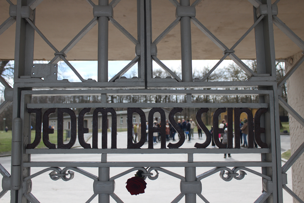 È il primo impatto per i visitatori e per la delegazione italiana che, con la guida di Ulrich Schneider, segretario generale della Fir, ha varcato il cancello che porta la beffarda scritta jedem das seine, «a ciascuno il suo».