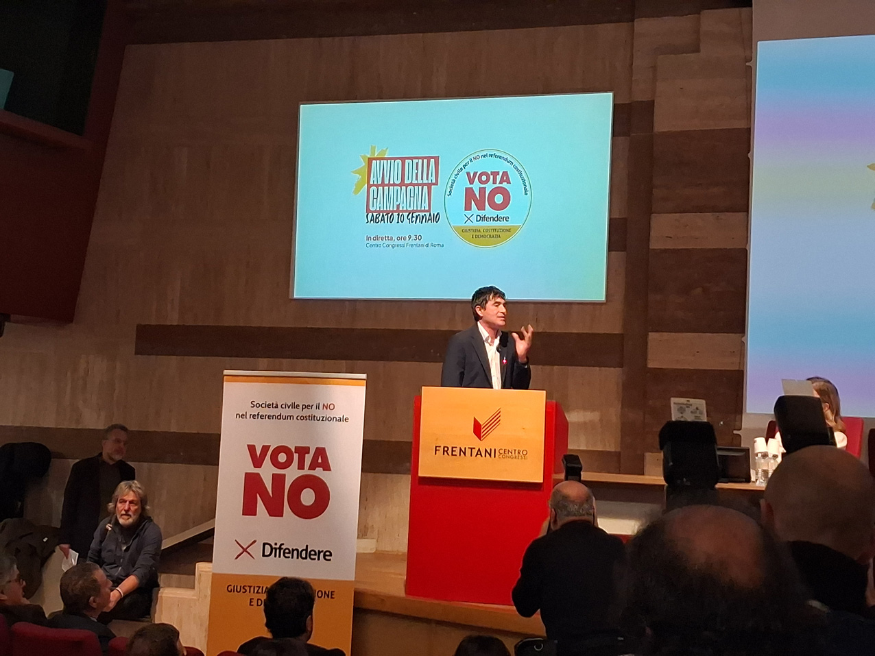 Dopo Pagliarulo, hanno preso la parola il segretario generale della Cgil. Maurizio Landini, il presidente del Comitato referendario fondato dall’Anm, Enrico Grosso, e i presidenti nazionali e portavoce di tante delle organizzazioni che compongono il Comitato. Sono intervenute da remoto o in presenza ai Frentani importanti personalità del mondo della cultura come Maurizio De Giovanni, Benedetta Tobagi, Tomaso Montanari, Gherardo Colombo, Sigfrido Ranucci e il premio Nobel Giorgio Parisi. C’è stato anche un intervento dell’avvocato Carlo Guglielmi, il portavoce dei 15 cittadini che hanno richiesto l’ulteriore quesito referendario per cui è in corso una raccolta firme che sta avendo un grandissimo successo.