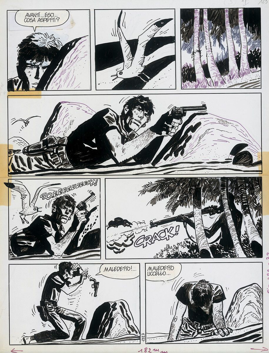 Così la luce di Corto, la sua narrazione limpida, coinvolgente e nuova è visceralmente legata a una nota amara che affiora nella malinconia, ai dolori che impediscono al cerchio del racconto di chiudersi, diventando l’allegoria disegnata di quei versi in cui Pasolini, parlando della sua “umile Italia” diceva: “[…] insieme/ la preistoria e la storia che/ in essa sono convivano, se/ la luce è frutto di un buio seme».