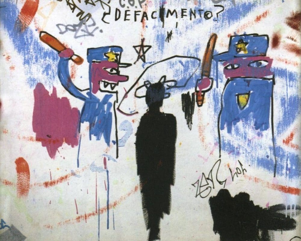 A lui nel 1983 l’artista dedica Defacement, nel quale due poliziotti picchiano una sagoma, simbolo dell’intera comunità nera. Con quest’opera Basquiat supera la proposizione di eroi neri sulla tela, decidendo di denunciare apertamente la crudeltà del razzismo. Micheal Stewart non è solo un compagno dell’artista ma è il simbolo di tutti quelli che, ingiustamente, subivano le violenze delle forze pubbliche.