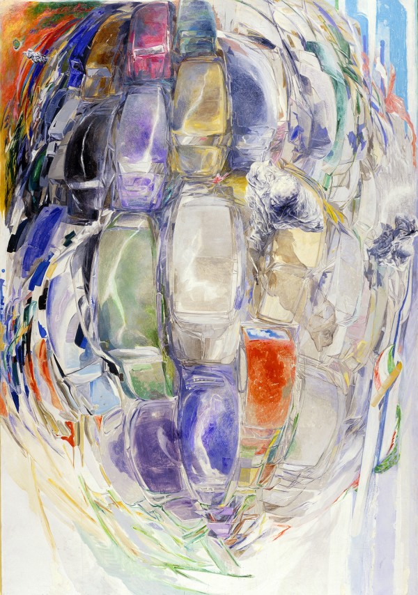Esposte circa ottanta opere, fra quadri (cinque realizzati per l’occasione), pastelli e alcuni manifesti politici. Fra le opere più rilevanti, La città che scende del 1963; Funerali di Togliatti del 1965, Il Traghetto per Palermo del 1984, Scoglio del 2018 e i ritratti, fra cui Stalin del 1964, Mao Pianeta del 1968 e quelli dedicati a Papa Giovanni Paolo II.