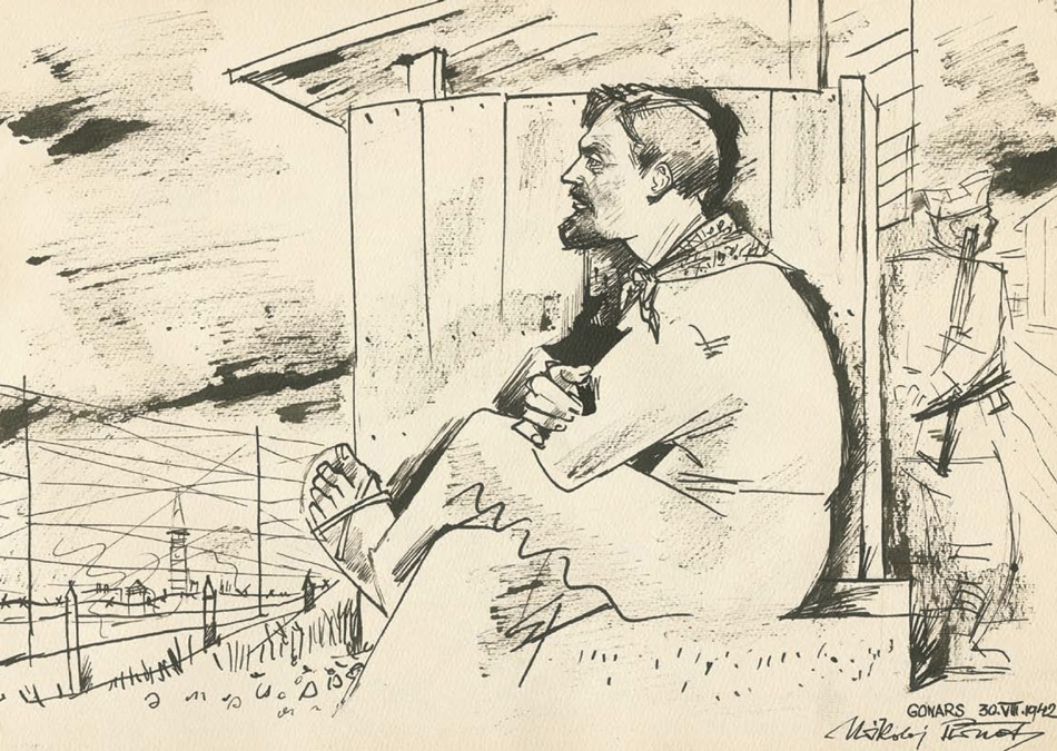 A testimonianza di quella terribile esperienza ci sono diversi documenti, dalle relazioni sanitarie del Dottor Cordaro ai molti disegni e dipinti che illustrano come il campo era organizzato. Dalle stesse opere l’architetto Alessandro De Ioannon, ha ricostruito un plastico in miniatura del campo. La mostra ci permette così di ri-guardare la storia attraverso le opere dell’importante collezione di disegni che il dottor Cordaro ha ricevuto in dono dagli internati del campo di concentramento di Gonars, compreso in busto in bronzo realizzato dallo scultore Nikolaj Pirnat. In mostra sono espone opere di Herman Vrečko, Milos Mehora, Mirko Lebez, A.D. Kurandić, Ivan Garbajs, B. Jeločnik, Otmar Drelse, J. Mezan, Leo Furlan.