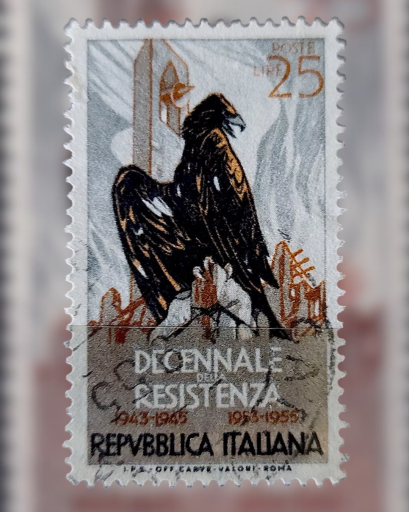 La Liberazione dell’Italia dal nazifascismo, il 25 aprile del 1945, è stata l’epilogo di una fase tragica della storia italiana. I valori resistenziali, che pure hanno permeato la vita politica degli Anni 50 e 60, non sono stati molto presenti nella filatelia dei primi anni repubblicani, se non a cadenza decennale. Basti pensare che fino al 1965 solo un francobollo era stato dedicato alla Resistenza: un francobollo da 25 lire, emesso il 1° giugno 1955 per ricordare il decennale della Resistenza (anche se con un ritardo di oltre un mese).