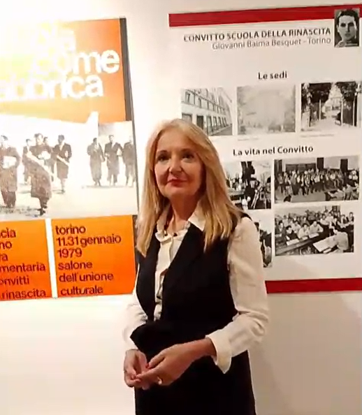 Alla presentazione della mostra non poteva non essere presente anche Lidia Gattini, figlia di Fernando Gattini, “Lupo”, curatrice di una precedente mostra, utilizzata anche in questa occasione, e ideatrice di un documentario, anche questo utilizzato per la mostra, realizzato insieme agli studenti del Liceo Cavour di Torino. “Io sono cresciuta con la narrazione e con la cultura dei Convitti Scuola della Rinascita. Ho avuto la fortuna di conoscere molti ex convittori: si ritrovavano periodicamente e continuavano a portare avanti la pratica dell’amore per la collettività, della ricerca del bene della società. Anche nella loro vita professionale portavano avanti gli ideali fondanti dei Convitti scuola della Rinascita”.