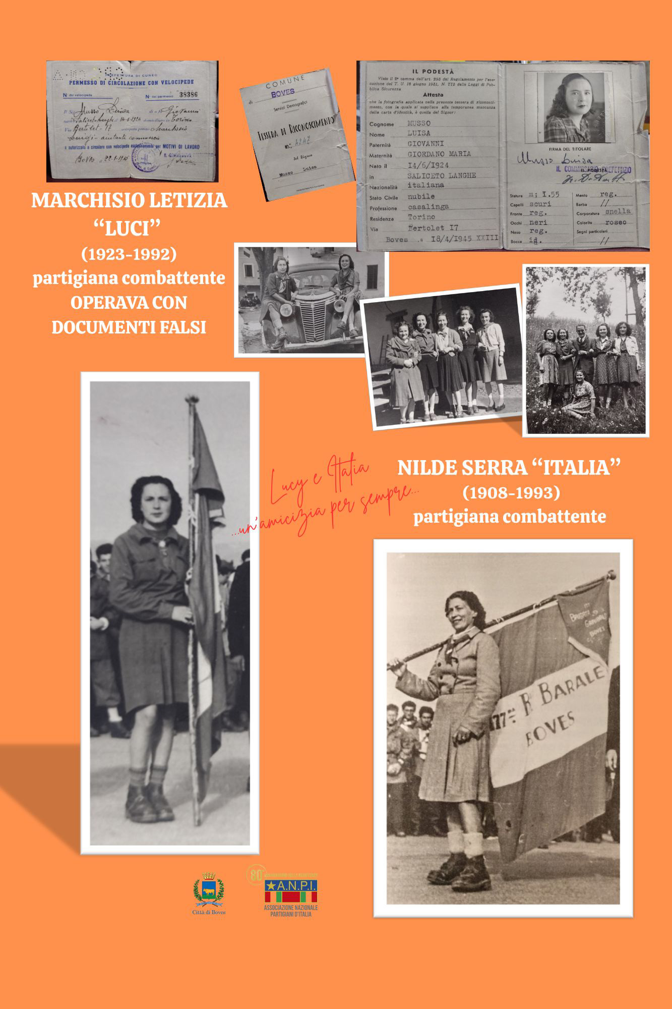 Ma racconta anche la lotta di “Luci”, Letizia Marchisio, ventenne cuneese, segnalata ai fascisti perché aiutava i partigiani. Proprio mentre i fascisti andavano a prenderla nel negozio in cui lavorava come commessa, un vicino la avvertì e lei riuscì a scappare dal retro per raggiungere la montagna. Siccome il suo nome era ormai segnalato alle autorità, quando arrivò a Boves, i partigiani le procurarono dei documenti falsi (che la figlia custodisce preziosamente) e divenne Musso Luisa, residente a Torino. Venne riconosciuta come partigiana “combattente”, qualifica che indicava una partigiana che sapeva utilizzare le armi, smontarle e rimontarle (questo per nasconderle, per esempio nei tubolari della bicicletta, per portarle da un comando partigiano ad un altro), addestrare altre donne.