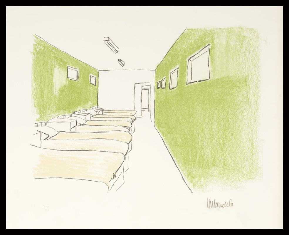 «Oggi, quando guardo Robben Island, – si legge in uno scritto di Mandela – la vedo come una celebrazione della lotta e un simbolo delle migliori qualità dello spirito umano, piuttosto che come un monumento alla tirannia e l’oppressione brutale dell’apartheid. Robben Island è un luogo dove la gente continuava a credere quando sembrava che i loro sogni fossero senza speranza; un luogo dove la saggezza e la determinazione hanno superato la paura e la fragilità umana. È vero che Robben Island, una volta, era un luogo di tenebre, ma fuori da quel buio è arrivata una meravigliosa luminosità, una luce così potente che non poteva essere nascosta dietro le mura della prigione, trattenuta da sbarre o dal mare circostante. In questi schizzi, dal titolo My Robben Island, ho cercato di colorare i disegni in modo che riflettessero la luce positiva in cui l’ho vista. Questo è ciò che vorrei condividere con le persone di tutto il mondo, affermando l’idea che anche i più fantastici sogni possono essere raggiunti se siamo disposti a sopportare le sfide della vita».