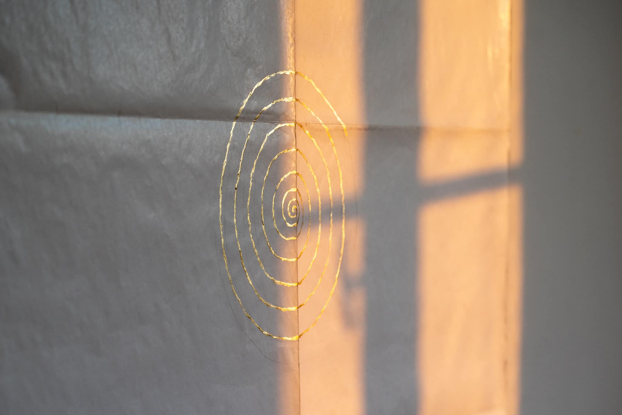 È in quello spazio, tra la morte dei sette figli e la sua, si è innervato il lavoro artistico. “Non c’è un termine per indicare una donna a cui sono morti i figli. E lei come madre è stata uccisa sette volte. Un corpo di madre laica si è inserito nel cielo d’oro del simbolico religioso. E diventa un simbolo della violenza. E allora cammini con lei, cercando il dolore che lei non può dire. Un silenzio enorme, che devasta e diventa un vuoto nei disegni”.