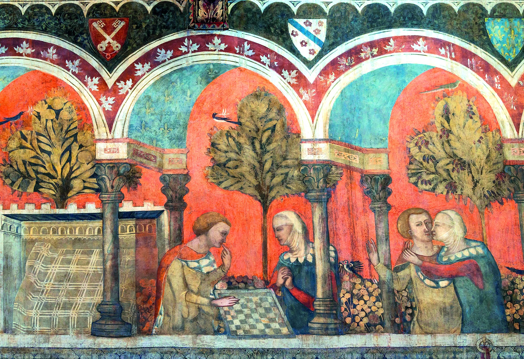 Lo testimoniano le numerose miniature che Chiara Frugoni ha sapientemente collazionato a fianco delle godibili e variegate citazioni dei testi a cui ha attinto; tra esse figurano ovviamente i grandi classici della novellistica medievale (spesso provenienti da manoscritti francesi), primo fra tutti il Decameron di Boccaccio, ma anche il Trecentonovelle di Franco Sacchetti, e poi ancora i romans francesi appartenenti al ciclo della Table ronde, come Le livre de Lancelot du Lac, la poesia cavalleresca e dell’amor cortese, e pure la trattatistica e, ovviamente, i testi religiosi; senza dimenticare, infine (spostandoci nel mondo dell’‘arte figurativa’), i vari cicli di affreschi di soggetto sia sacro che profano e popolare.