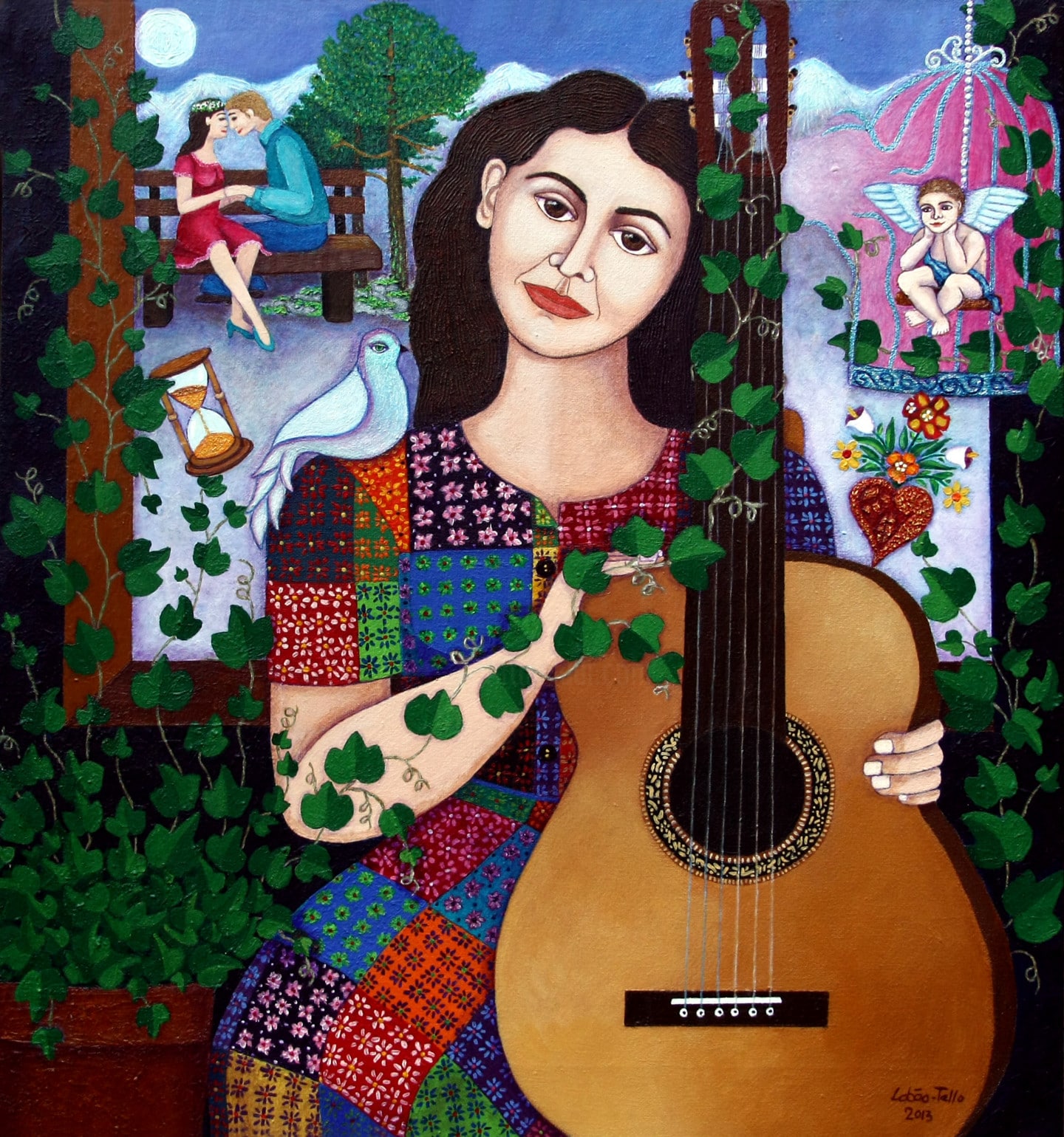 E, a rappresentarle tutte, l’autrice sceglie per l’immagine di copertina proprio lei, Joan Baez che, con quel suo broncio un po’ spavaldo e la serietà di chi sa bene cosa sta facendo, si fa accompagnare alla chitarra da un Bob Dylan tanto giovane da essere quasi irriconoscibile. La guardiamo affascinati ancor prima di aprire il volume e lei è lì, il famoso scatto in bianco e nero di Rowland Scherman scaldato da un arancio calore e fiamma, che canta e guarda oltre, attirata da un progetto più ampio, comune, attuale. Portavoce di intere generazioni di cantautrici, Joan Baez ha ben chiaro il suo ruolo nel mondo: Se doveste mettere delle etichette su di me/la prima sarebbe essere umano/ la seconda pacifista e solo se ne potessi avere/ una terza sarebbe folksinger. Idee chiare, universali, sostenute e realizzate da tutte queste donne, una dopo l’altra, una per l’altra, spesso con estrema difficoltà.