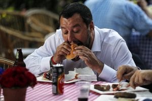 La retorica di Matteo Salvini è, insieme, elementare e raffinata, nonché del tutto coerente con l’ideologia populista che la motiva. Il primo obiettivo è infatti quello di offrire di sé l’immagine di una persona comune (stavo per scrivere di un “uomo qualunque”), alla mano, che ama stare in mezzo alla gente. A questo serve la raffica di selfies in cui si ritrae mentre gioca con i figli sulla spiaggia, mentre passeggia tra la folla, mentre mangia la pizza seduto a una lunga tavolata, mentre degusta prodotti tipici, e via fotografando. Sfera pubblica e sfera privata si sovrappongono nel profilo di un leader che vuole essere scambiato per “uno di noi”, e che perciò non si vergogna di confessare alcune debolezze: nel video postato su Facebook durante l’ultima campagna elettorale per le politiche, e presto divenuto virale, il capo della Lega si accende una sigaretta e si scusa per essere ricaduto nel vizio del fumo. Al medesimo scopo è rivolto il modo di parlare. Salvini adopera la lingua dell’uso quotidiano, un lessico colloquiale qua e là infarcito di termini e frasi gergali in parte derivati dal vocabolario tipico della stagione bossiana (“strafregarsene”, “rompersi le palle”, “nisba”, “senza arte né parte”, “è finita la pacchia”), di metafore e similitudini banali (“non giochiamo al Monopoli”, con riferimento alla consapevolezza della necessità di tenere in ordine i conti pubblici; oppure: “i confini d’Italia sono come la porta di casa nostra”). E se nell’eloquio torrenziale fa capolino qualche anglismo (bisogna pur fare qualche concessione allo slang imperante), si tratta sempre di parole abusate, e quindi di immediata comprensione (per esempio, spread). Infine, Salvini predilige il discorso paratattico, con rare subordinate: in tal modo gli riesce di trasformare le proposizioni in slogan, con sicuro effetto propagandistico.