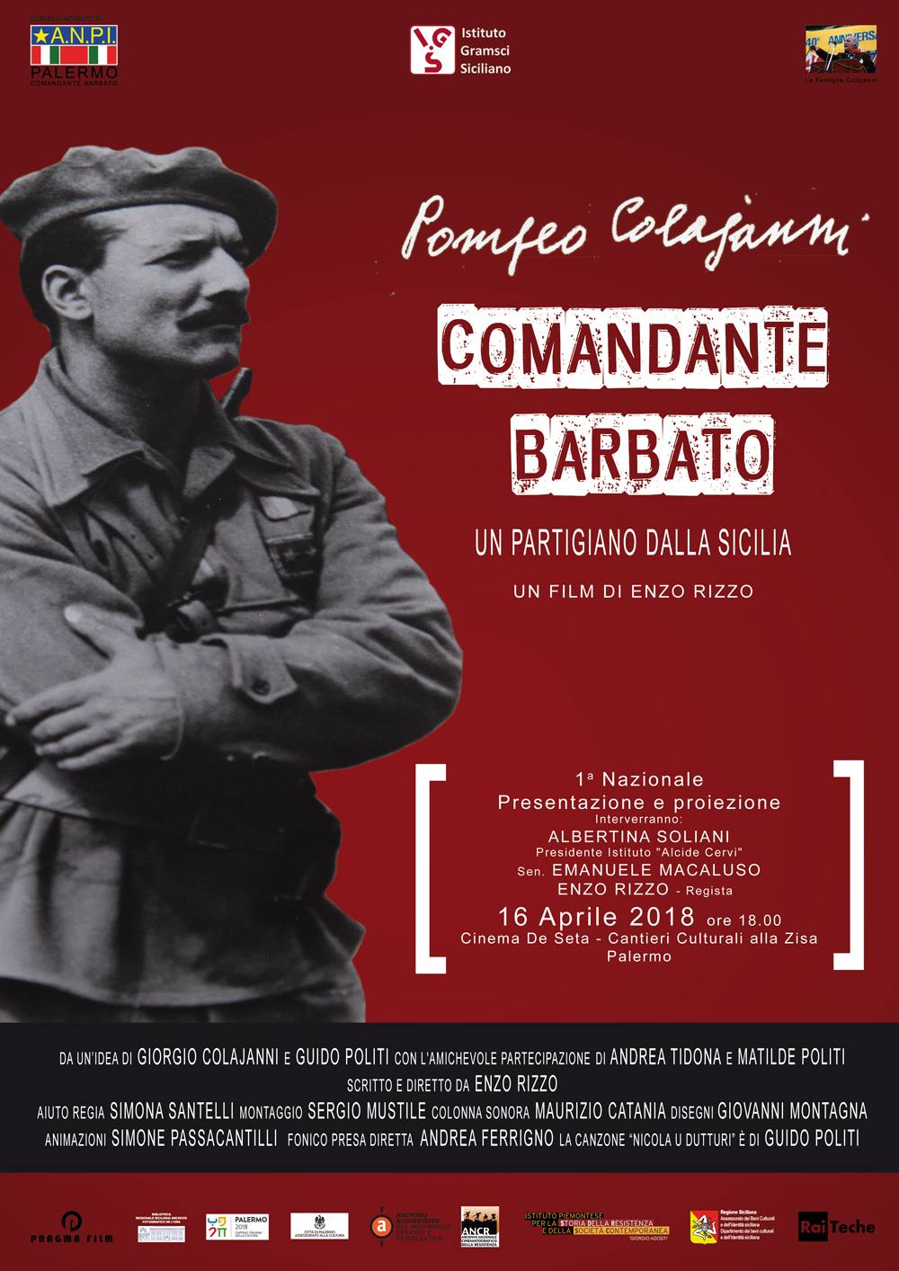 È, ben più che un lascito, un impulso importante di “memoria attiva” quello che viene dall’evento dei Cantieri culturali di Palermo. Ma c’è da metterne in risalto, anche e soprattutto, una fondamentale acquisizione conoscitiva di valenza storica definitiva. Certo, nessun altro luogo sarebbe stato più naturale per la “prima” del film, ma il dibattito di presentazione avrebbe forse potuto avere una sede, se non più degna, più significativa, a Milano, capitale nazionale della Resistenza. E il motivo ne è proprio l’acquisizione conoscitiva di valenza storica definitiva, che è la seguente: la conquistata consapevolezza (almeno a partire dall’importante Convegno organizzato dall’Anpi a Napoli nel gennaio 2015) dell’indivisibile esperienza unitaria Nord-Sud e Sud-Nord dell’antifascismo e della Resistenza, con il pieno riconoscimento (che non è mai stato un riconoscimento facile e scontato, per via di certe irrisolte residualità “nordiste”, nonostante le cifre dei fatti) dell’imponente partecipazione meridionale e specialmente siciliana, tra le più vistose quantitativamente e qualitativamente, alla guerra di Liberazione; un riconoscimento che conferma il senso del grande raduno nazionale dei militanti dell’Anpi il 1° maggio 2010 a Portella della Ginestra, luogo estremo di testimonianza delle specificità sociali e delle capacità di sacrificio di una cultura originariamente antifascista sviluppatasi in Sicilia, dal grande movimento dei Fasci dei lavoratori di fine Ottocento al secondo dopoguerra, sul percorso ininterrotto di una tradizione che – lo ha ricordato con forza Ottavio Terranova – si è fusa organicamente al Nord con la guerra al nazifascismo, diventando azione militare e unitaria lotta civile nazional-popolare. Niente potrebbe meglio testimoniarlo del fatto stesso che il nome di battaglia prescelto da Pompeo Colajanni, “Barbato”, ovvero “Nicola Barbato”, era il nome del medico protosocialista di Piana degli Albanesi (paese nel cui territorio ricade Portella della Ginestra), leader sommo e indimenticabile di quei Fasci dei lavoratori siciliani. Un lungo filo di storia patria che, dalla Sicilia, percorre e avvolge in una sola storia Sud e Nord d’Italia. Un filo, di cui Pompeo era ben consapevole, da non spezzare, ha detto Albertina Soliani (ricordando tra gli altri siciliani il partigiano comunista Gino Cortese, anche lui nativo di Caltanissetta, che tanta parte, e una parte fondamentale, ebbe nelle vicende resistenziali della sua Parma), così concludendo il suo intervento, senza retorica, per quanto con enfasi pensosa e calibrata: “Grazie Nicola Barbato, Grazie Sicilia!”