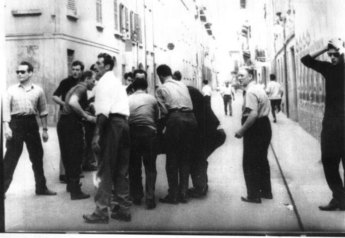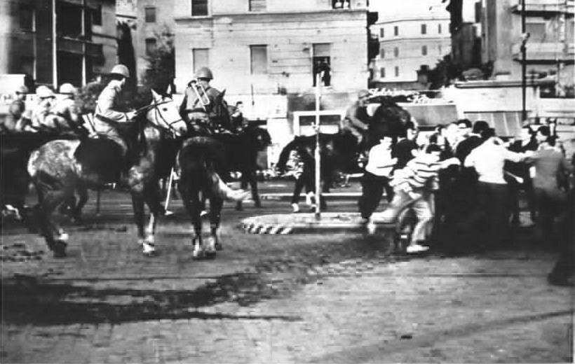 Così ci muovemmo, preceduti dalla corona, lungo viale Aventino. Fatti pochi passi, prima ancora di raggiungere Porta S. Paolo, cominciò il finimondo: la cavalleria, guidata da Raimondo d’Inzeo, caricò la testa del corteo, su cui si rovesciava il getto di acqua colorata degli idranti, e intervenivano le camionette della celere. La folla si disperse per i giardinetti dietro l’ufficio postale Ostiense, per le scale che salivano tra le case verso S. Saba e per le vie del vicino quartiere Testaccio. Si scatenò una vera e propria guerriglia urbana: i manifestanti si difendevano dalle cariche gettando sulla polizia tutti gli oggetti che riuscivano a trovare. Franco Rodano, Ugo Bartesaghi ed io non so come ci ritrovammo illesi e asciutti in mezzo alla confusione. Pietro Ingrao però, e un parlamentare socialista di Bologna, l’on. Gian Guido Borghese, vennero feriti dalle manganellate e furono subito portati alla Camera: entrarono sanguinanti in aula, dove avvenne un vero putiferio.
