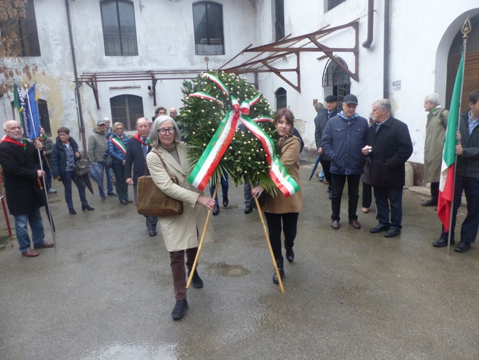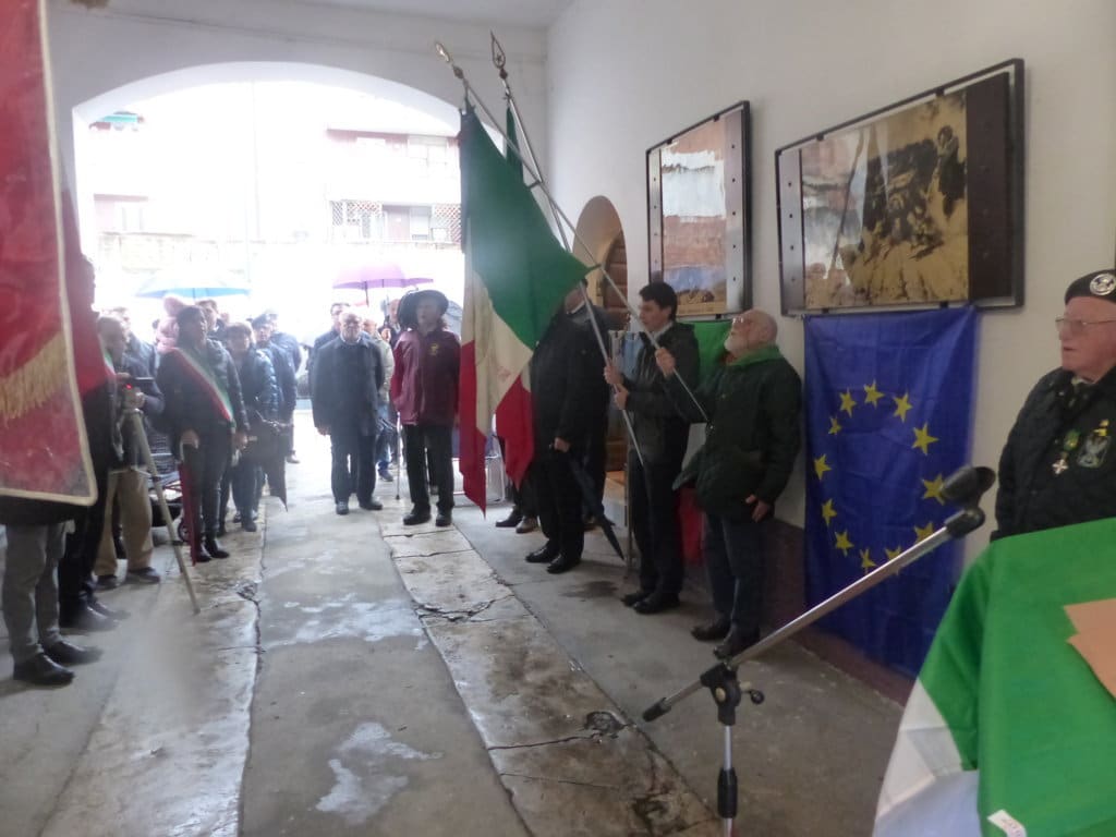 Alle “Casermette”, trasformate con bandiere italiane, europee e della pace, da posto di torture e orrori, in luogo della memoria della Resistenza partigiana, Ludovica Martelli e Paola Pascatti Sbrojavacca, parenti di Franco Martelli, hanno deposto la corona dell’Anpi davanti alla cella dove i fascisti imprigionarono “Ferrini”.