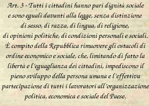 Anche loro hanno concorso alla fine della dittatura nazifascista e alla nascita della nostra Repubblica, basata sulla Costituzione, che permette al governo Berlusconi di esprimersi liberamente. Il miglioramento di una società si basa sempre sull’integrazione, sui rapporti e sul rispetto di un equilibrio tra diritto e dovere. Vorrei, perciò, citare una delle filastrocche del libro di Anna Sarfatti, La Costituzione raccontata ai bambini (Milano, Mondadori, 2006):